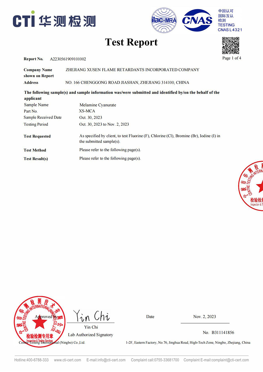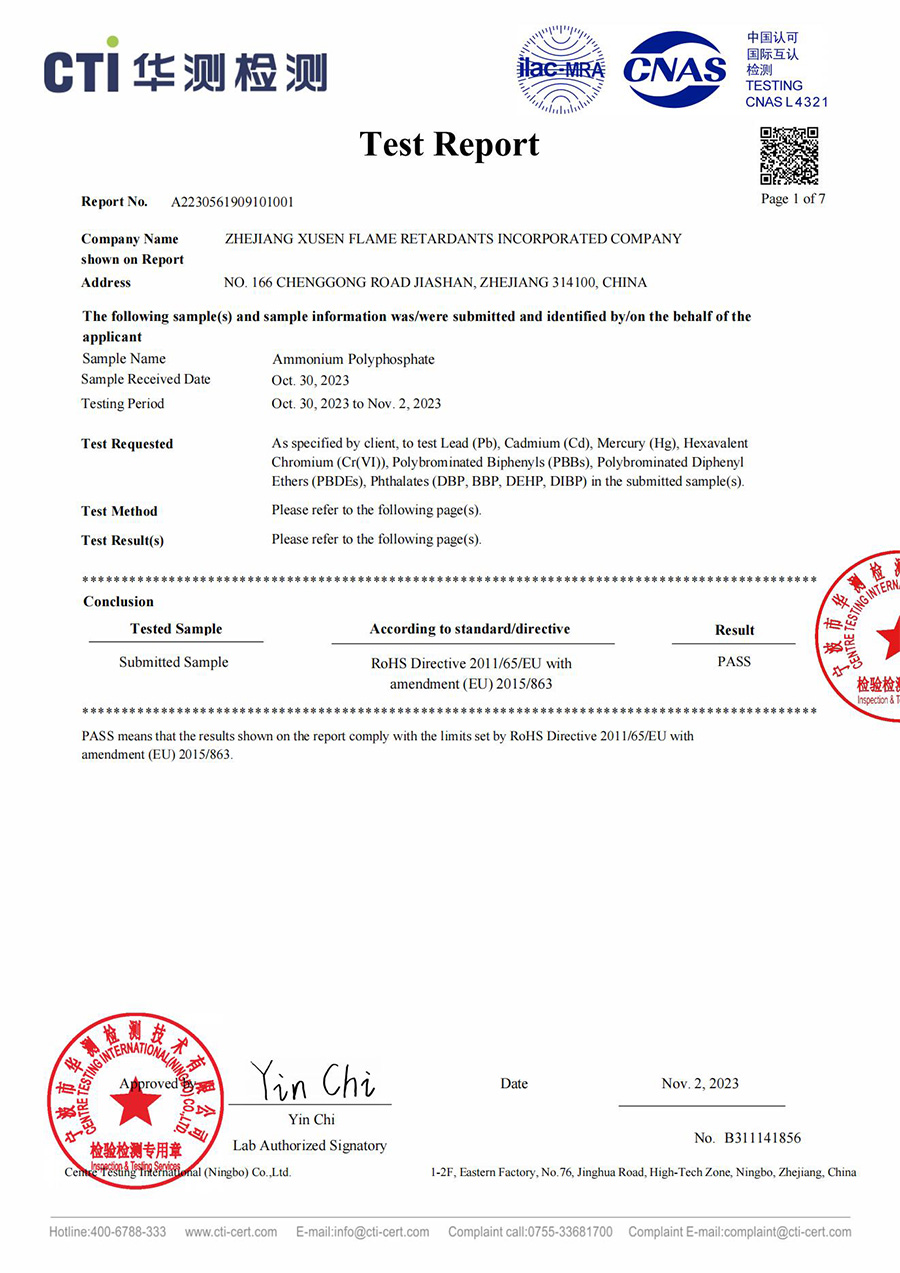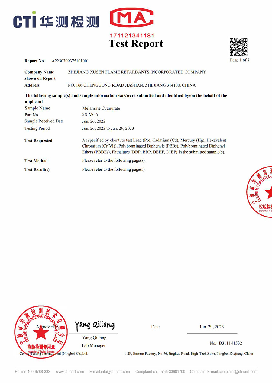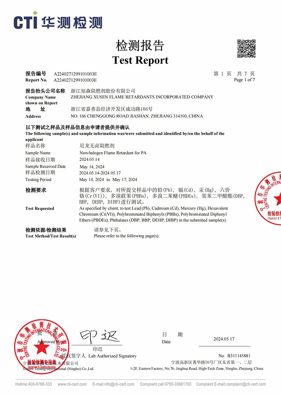 PA ROHS 테스트 보고서의 화염 지연