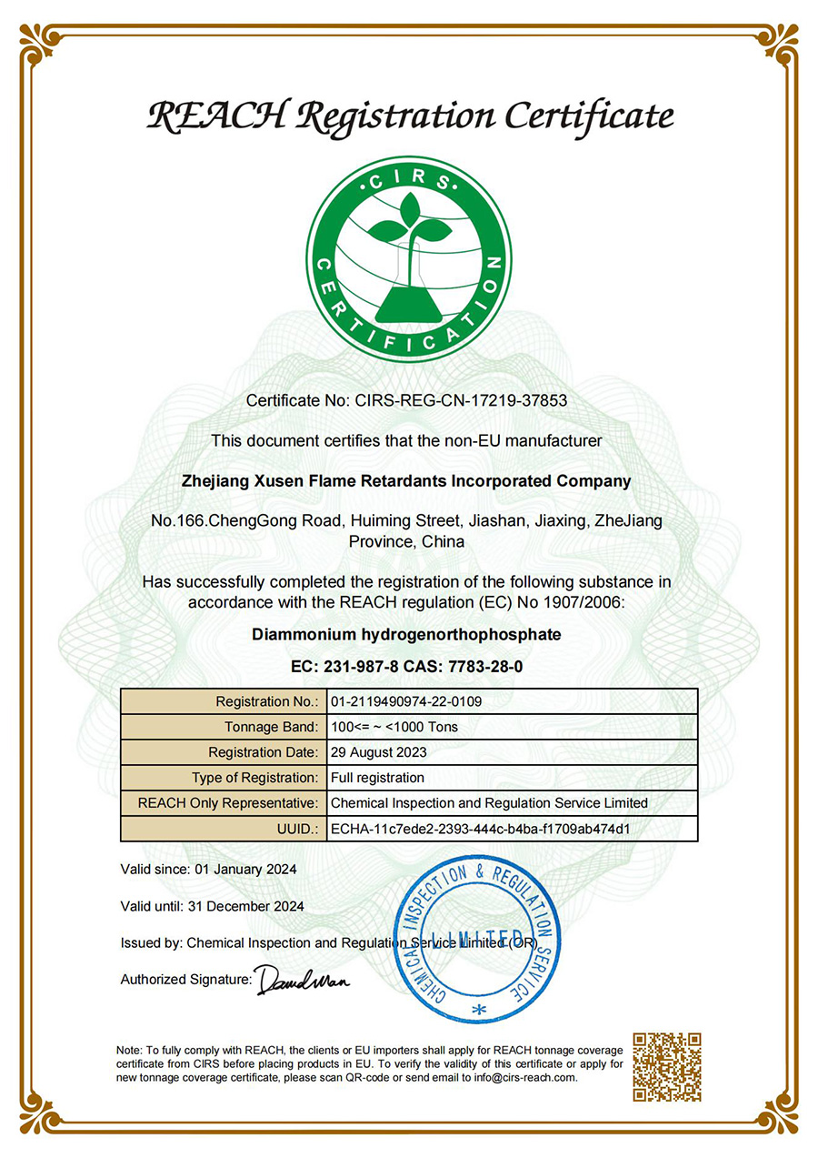 디아민 수소 포스페이트는 등록 증명서에 도달합니다